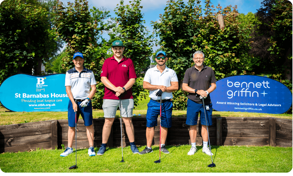 In 2024 Bennett Griffin, a local award-winning Solicitors firm, sponsored a much-loved charity golf day in aid of the hospice. Their support was instrumental in the huge success of the event, raising over £10,000 for St Barnabas.